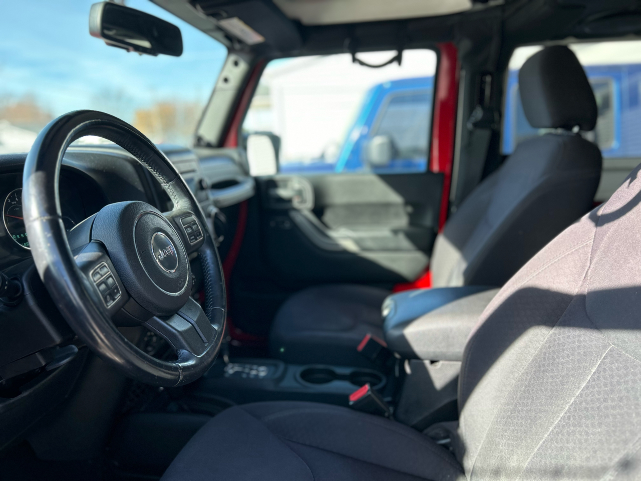 Cruise down the boulevard in style with this vibrant Red 2014 Jeep Wrangler! Adventure awaits with its powerful 3.6L V6 engine and Part-Time Four-Wheel Drive, ready to tackle any terrain. Whether you're hitting the trails or cruising around town, this Wrangler has got you covered. With its sleek black accents, swing-out rear cargo access, and front fog lamps, you'll be turning heads wherever you go. Plus, the convertible top lets you soak up the sun on those beautiful days.