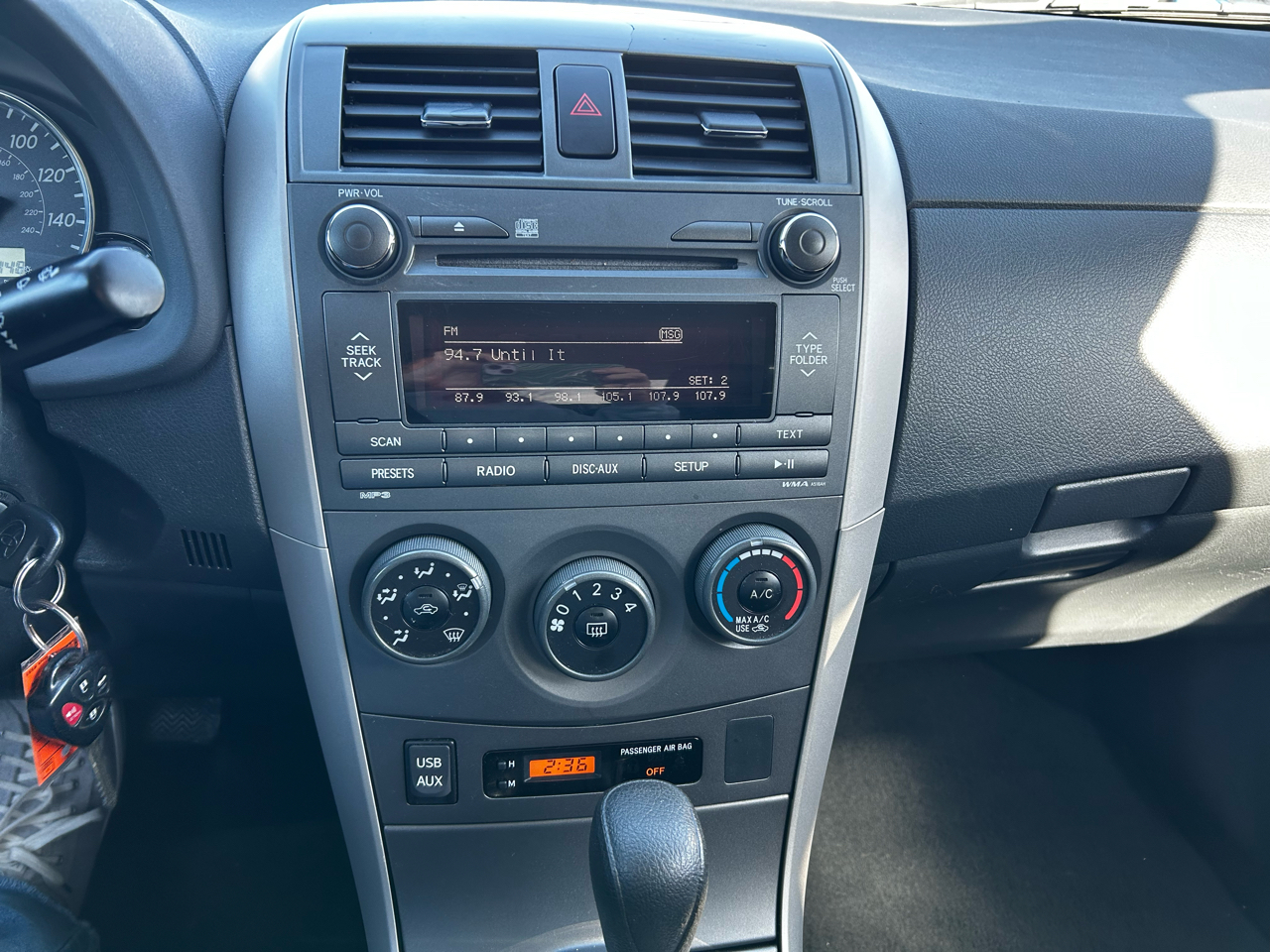 Step inside and you'll find a spacious interior with comfortable seating for five. With convenient features like multiple cup holders, dual glove compartments, and a 12V aux power outlet, this Corolla is designed with your convenience in mind. Plus, stay connected and informed with the multi-information display providing essential data at a glance.